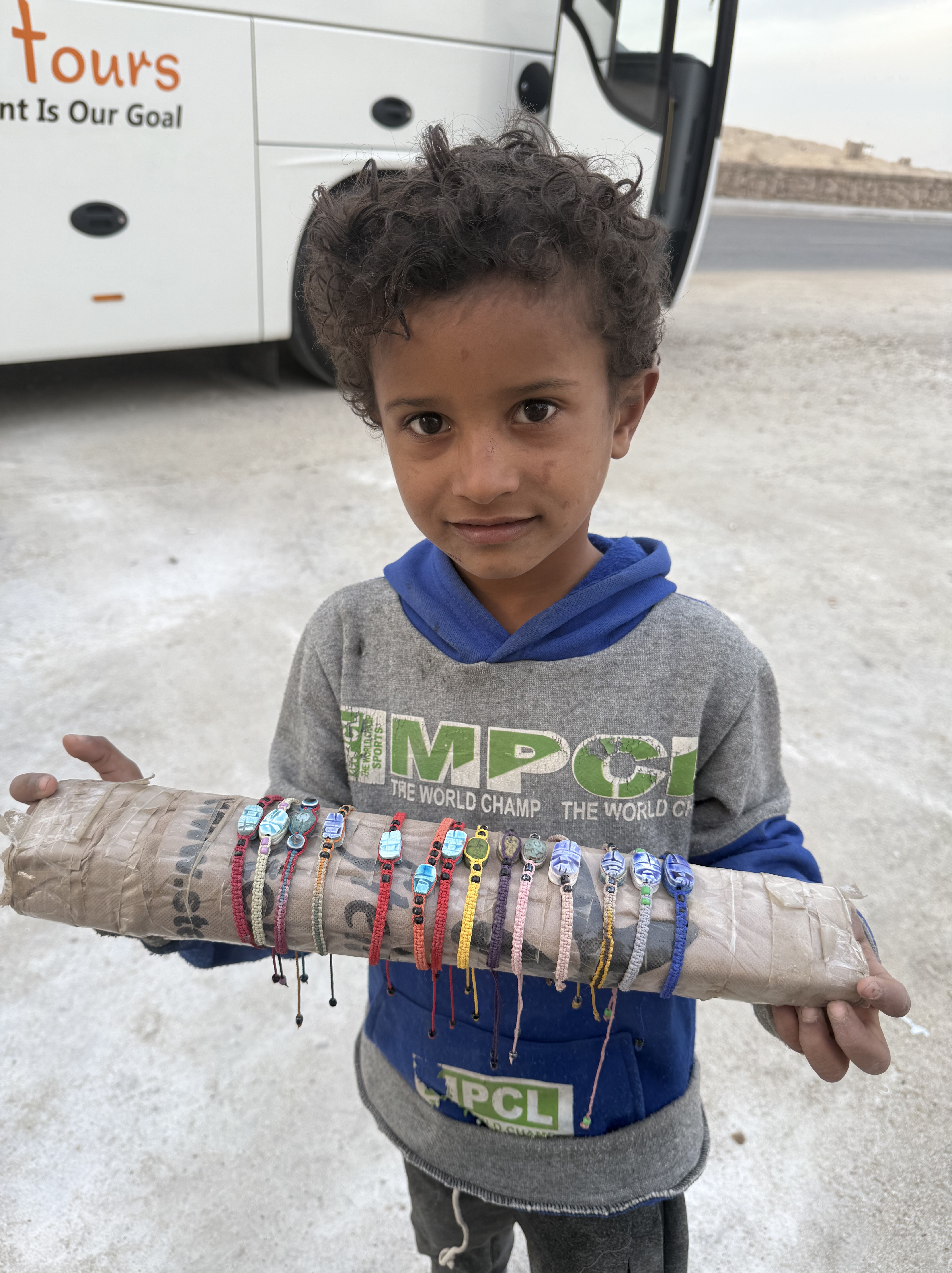 Two young boys sat on a waiting bench. One was engrossed in an iPad while the other was driving a remote control car between the customers. They had clearly been there a while.